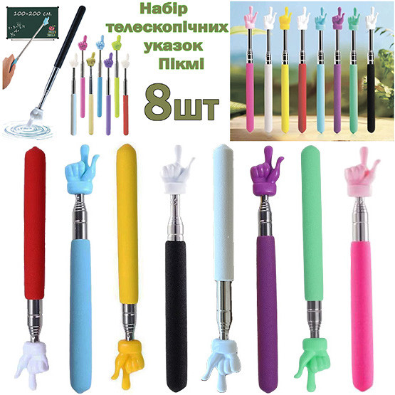 Зручний та яскравий набір телескопічних указок стане незамінним помічником для вчителів, викладачів, тренерів, а також у роботі з дітьми чи під час презентацій.